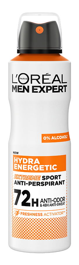 Дезодорант-антиперспірант для тіла Гідра Енергетик Екстрим Спорт, посилений технологією Активатор свіжості, допомагає залишатись "на висоті" навіть під час екстремальних навантажень. Доведена ефективність до 72 годин* без запаху та до 48** годин без поту.